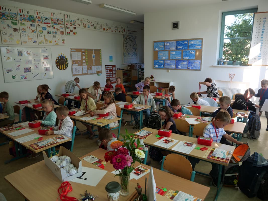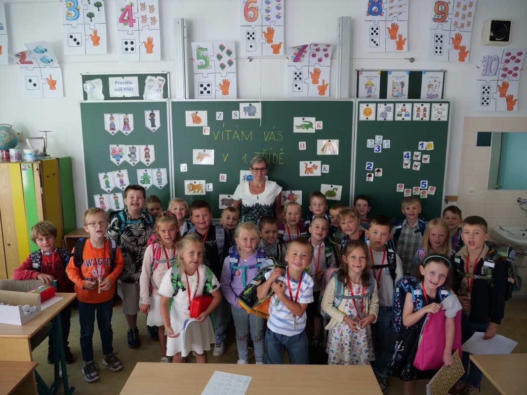 Prázdniny velmi rychle utekly, a tak se 1. září opět otevřely brány naší školy. Všichni již zkušení školáci se před osmou hodinou sešli na školním nádvoří, aby zahájili nový školní rok a slavnostně uvítali 26 prvňáčků. V úvodu všechny přivítal pan ředitel a poté dostali naši noví žáci od vedení školy symbolický klíč ke vzdělání. V doprovodu rodičů a třídní učitelky se prvňáčci vydali do vyzdobené třídy, kde poprvé usedli do školních lavic. A teď už s chutí do práce!