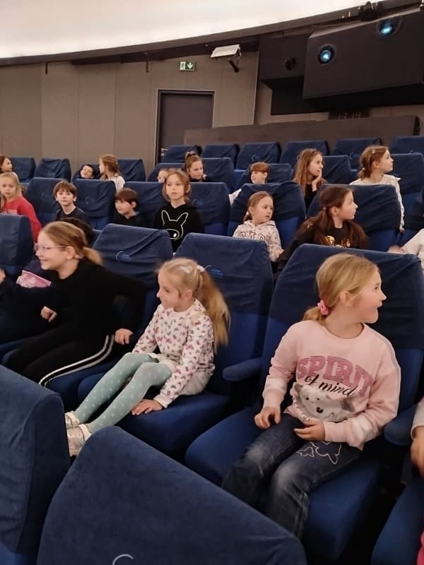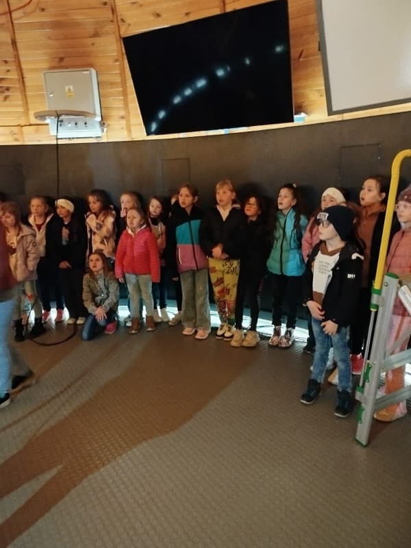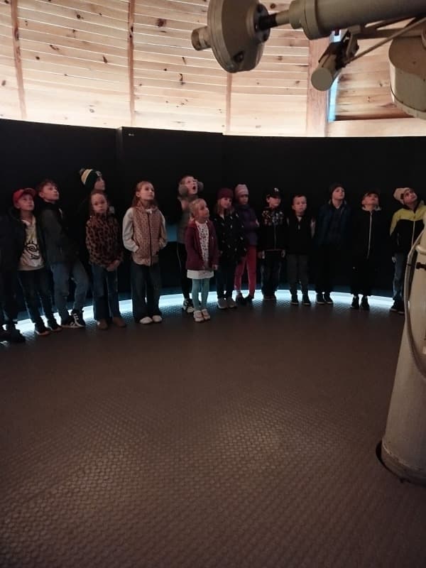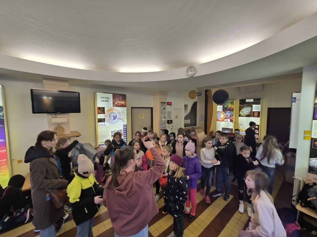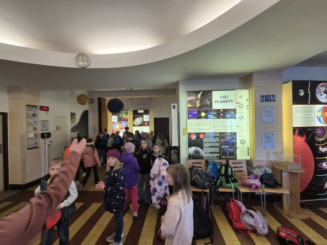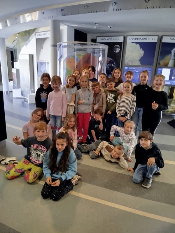 Chvíle napětí a úžasu zažili žáci při návštěvě Hvězdárny v Hradci Králové. V sále se pohodlně usadili a už mohli sledovat denní i noční oblohu, hvězdy ve znameních zvěrokruhu. Proletěli se vesmírem, navštívili planety Mars, Jupiter, Venuši. V závěru zhlédli pohádku o medvědovi a tučňákovi, kteří nás provedli vesmírem. Čas zbyl i na nákup drobných dárků, svačinu i proběhnutí. O tom, co zažili, budou vyprávět rodičům, kamarádům i paní učitelce.