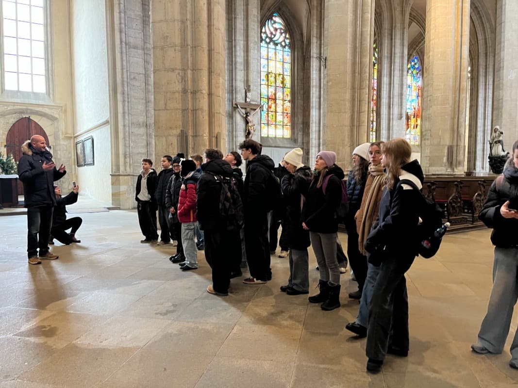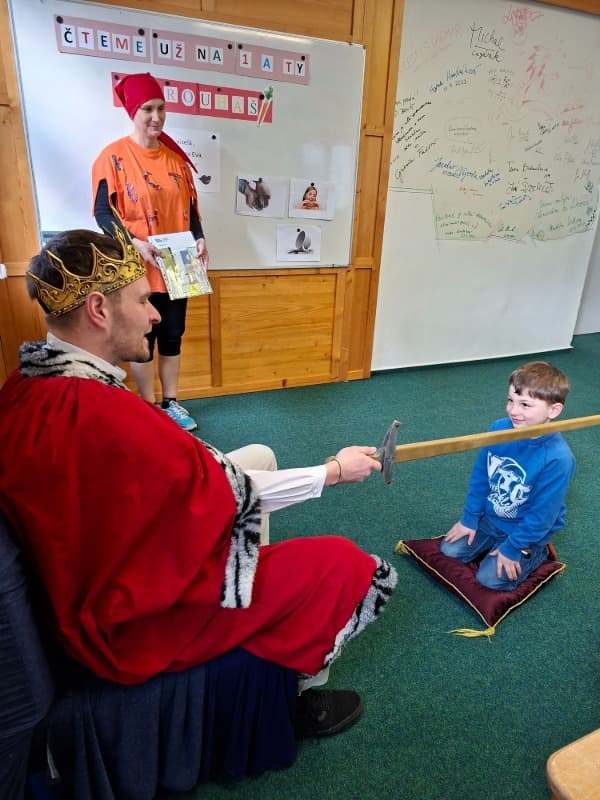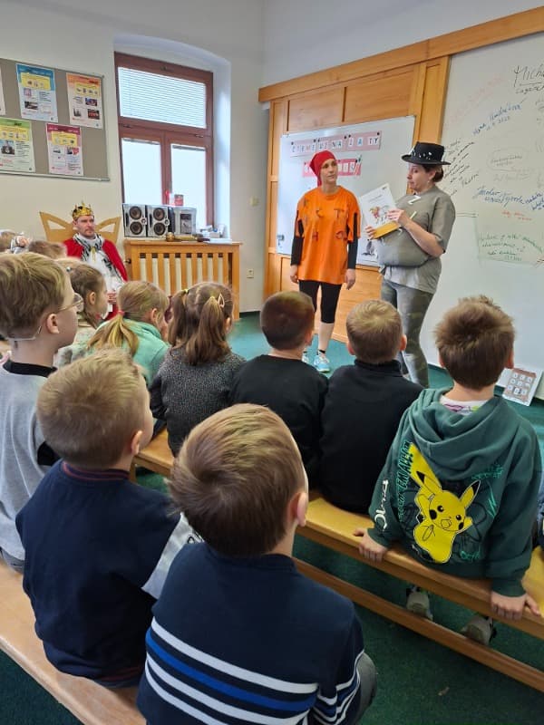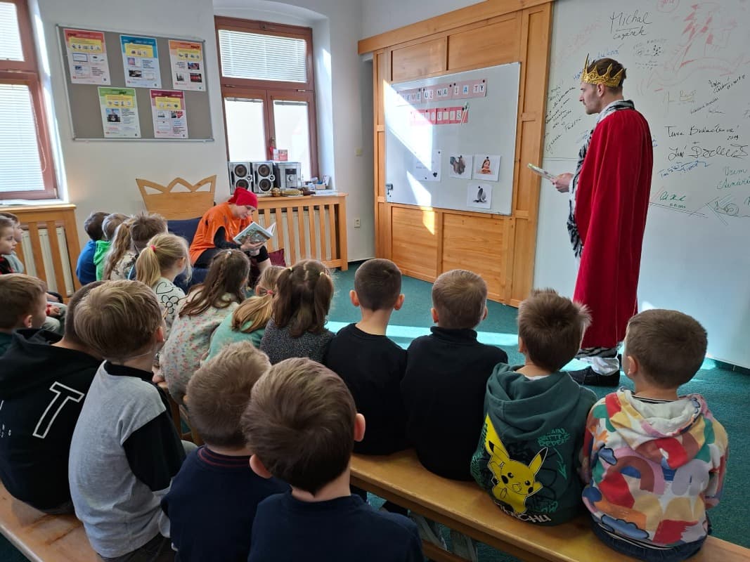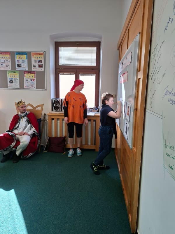 Začali jsme hned po prvním zvonění, kdy nám rozhlasem popřál pan ředitel krásný den s matematikou a pustil písničku, kterou učitelé matematiky složili pomocí AI.